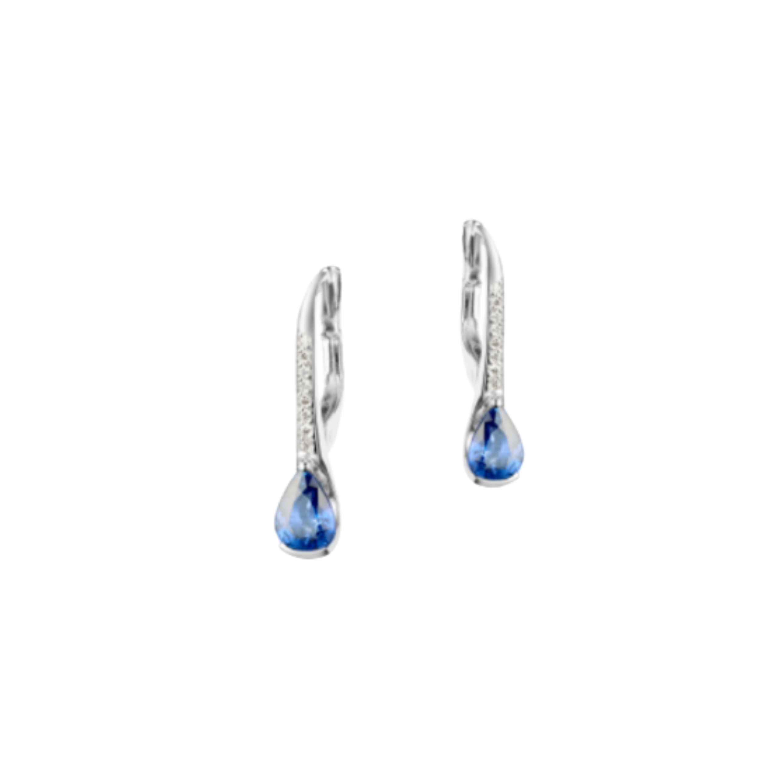 Le saphir bleu intense brille de mille feux, sublimé par l’éclat lumineux de l’or gris et rehaussé de délicat diamants. Les dormeuses suivent chaque mouvement, laissant la pierre capturer la lumière à chaque geste, pour un bijou à la fois léger, élégant et irrésistiblement captivant.