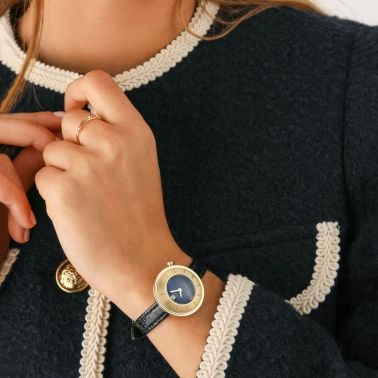 Inspirée par l’esthétique « Space Age » des années 70, la Lady VOLANTE est une montre-bijou aux lignes circulaires parfaites. Son design rétro-futuriste, à la fois doux et affirmé, en fait une pièce maîtresse pour les amatrices de singularité.